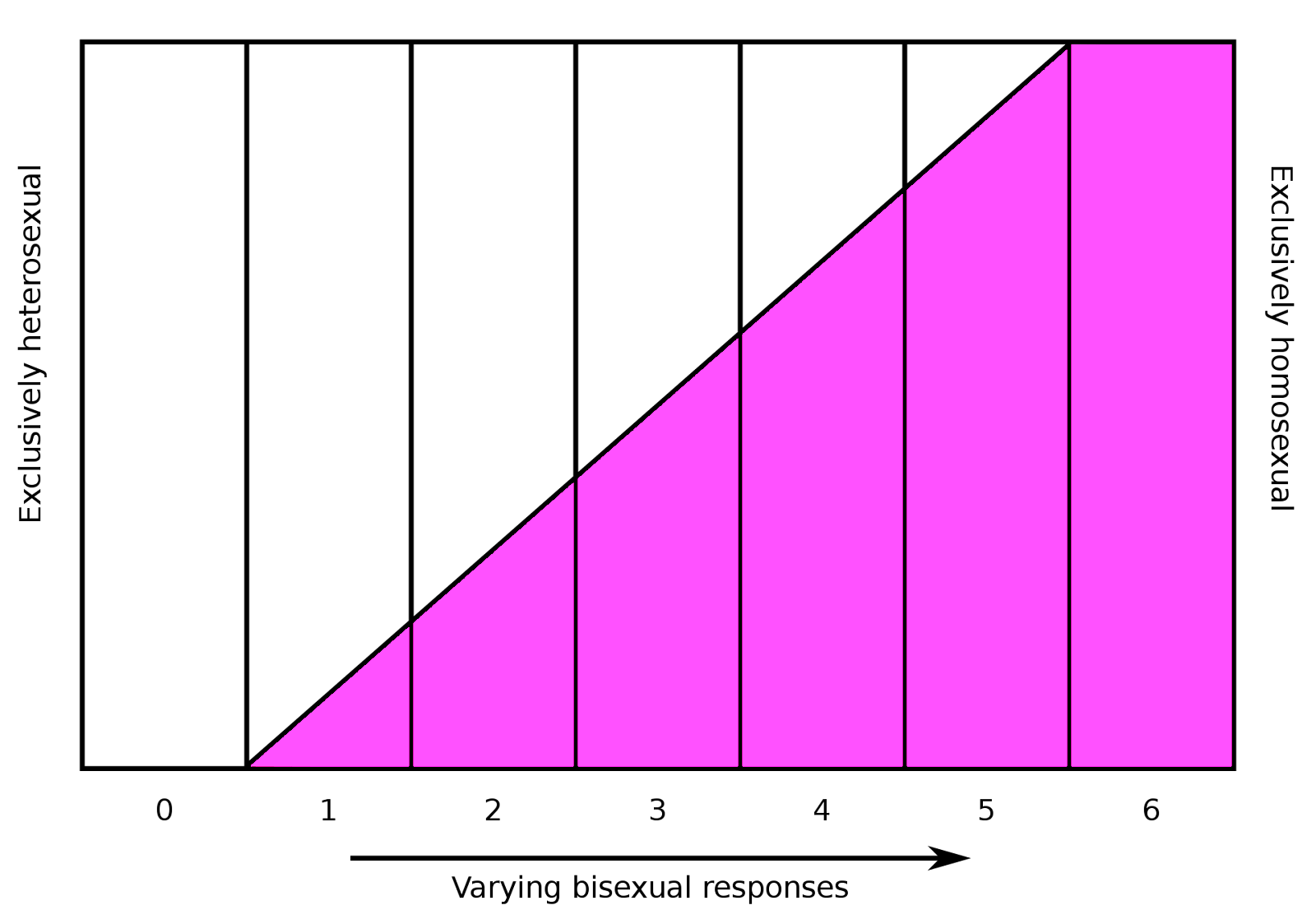 Even most bisexual men are more attracted to women than they are to men. Sexuality is a spectrum, and we’ve known this for a long time. This is a diagram first published in Alfred Kinsey’s 1948 report “Sexuality in the human male”:
